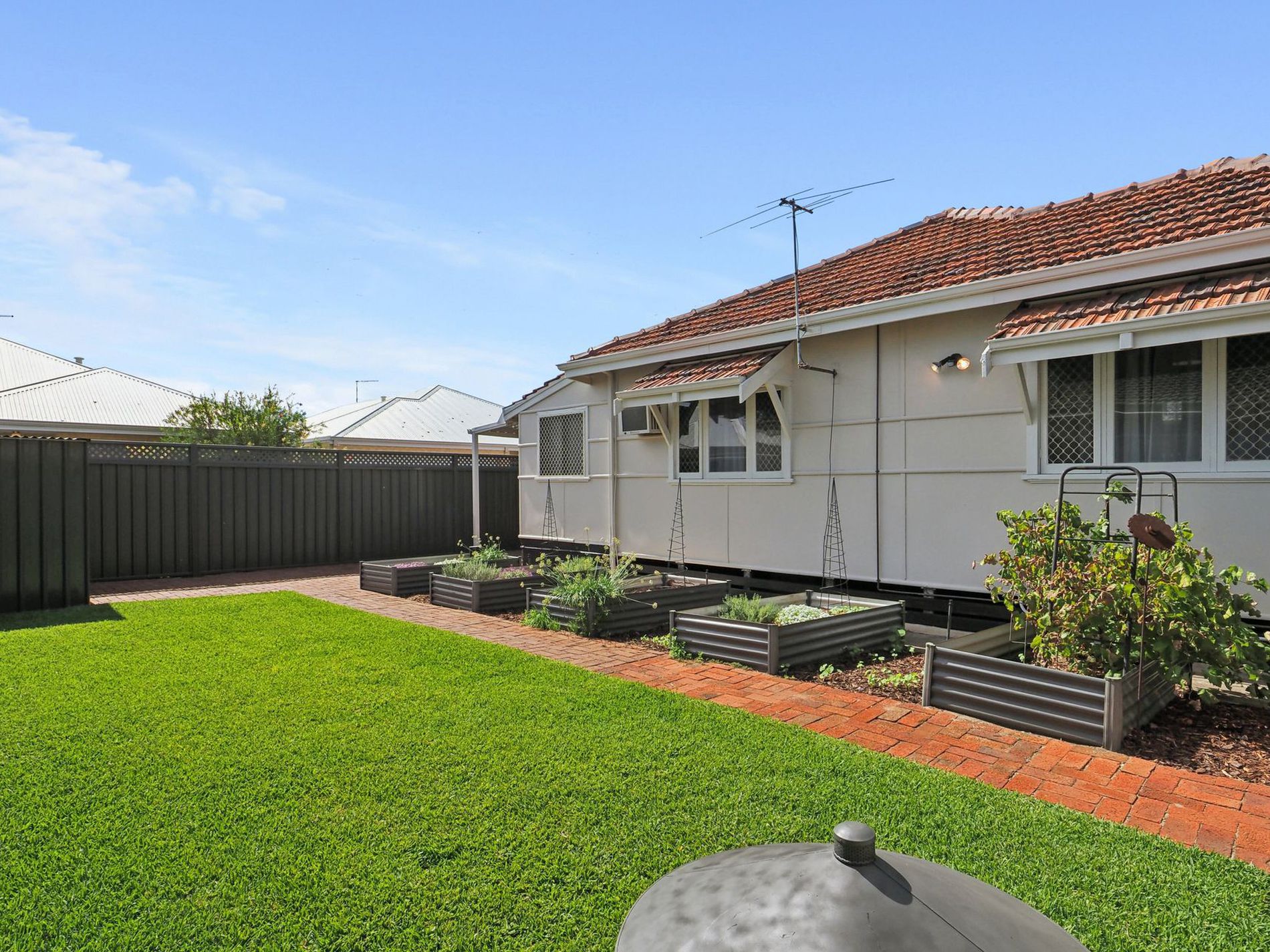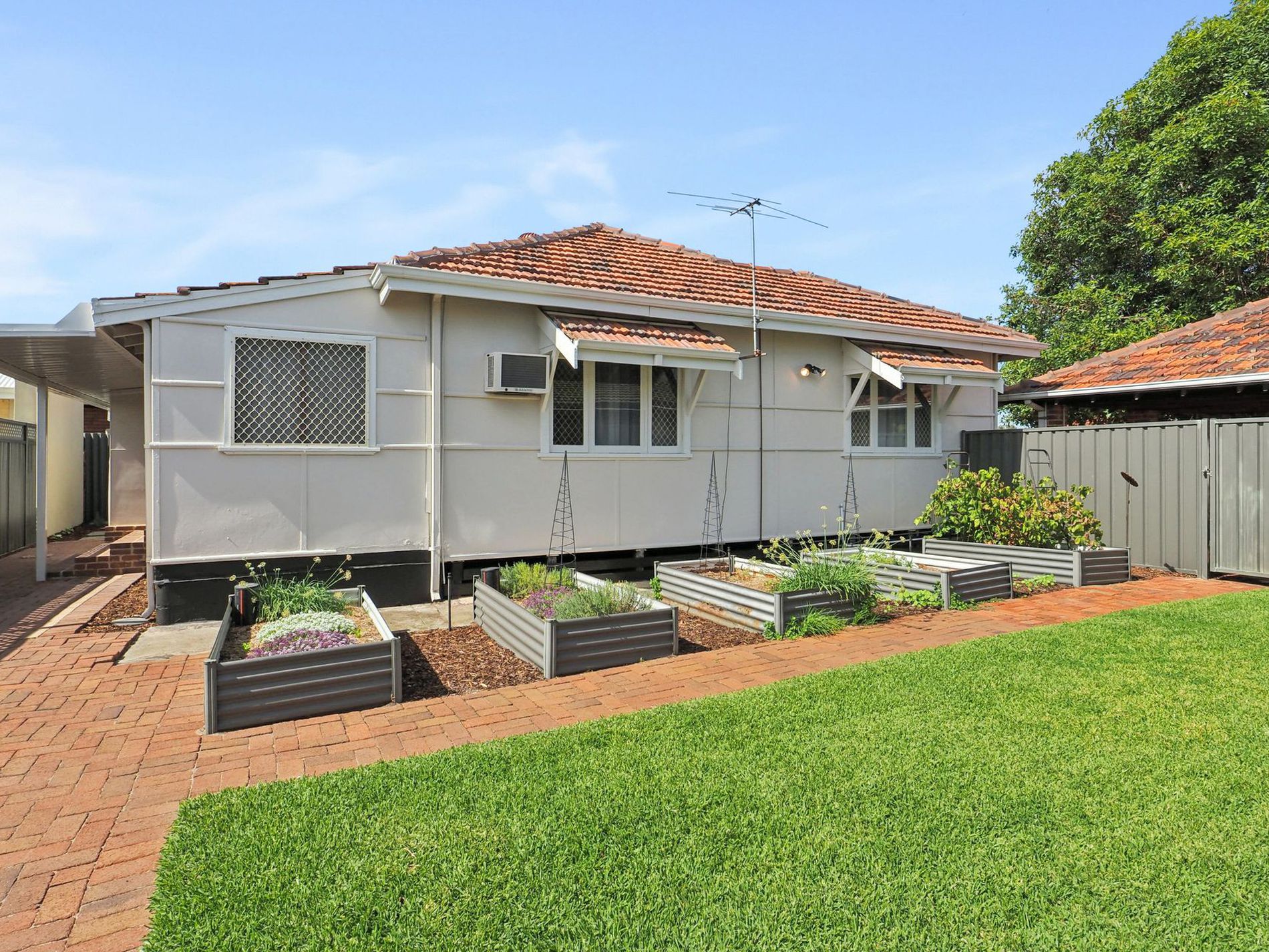 From the high ceilings and stunning jarrah floorboards to the decorative cornices and classic architraves, every detail reflects its character-filled appeal. The spacious layout offers a separate formal lounge, a well-appointed chef's kitchen with adjoining meals area, and a large master bedroom complete with a walk-in robe. Outside, the lifestyle continues with a lush, bore-reticulated gardens, raised veggie beds, and a secure backyard perfect for kids to play.